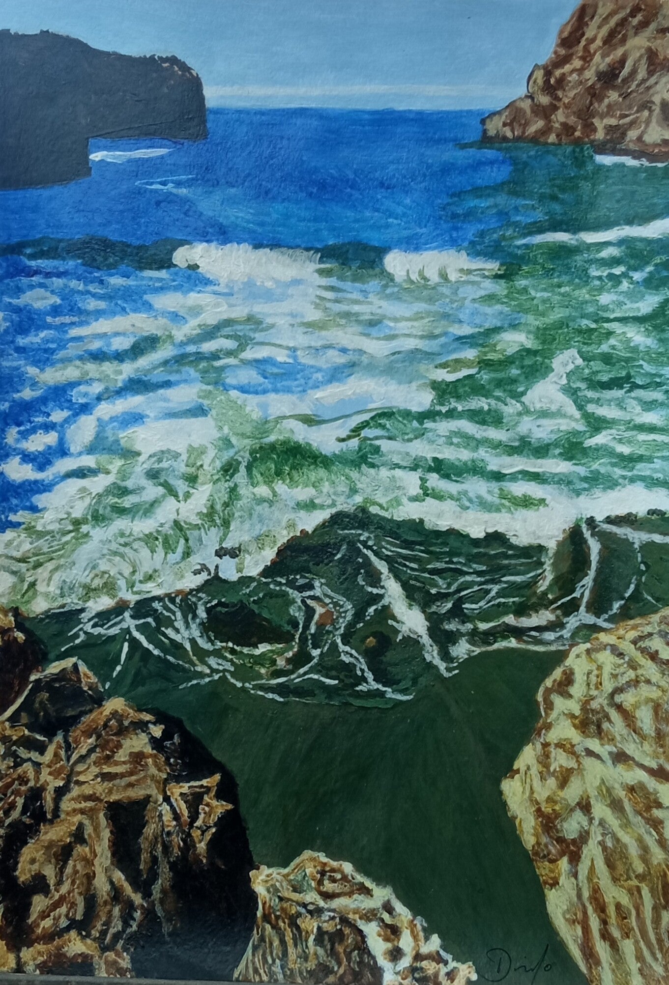 La transparencia del agua del mar y la luz clara y penetrante del sol que atraviesa el agua coloreandola , ofrece una visión profunda, multidemsional de este paraje natural.